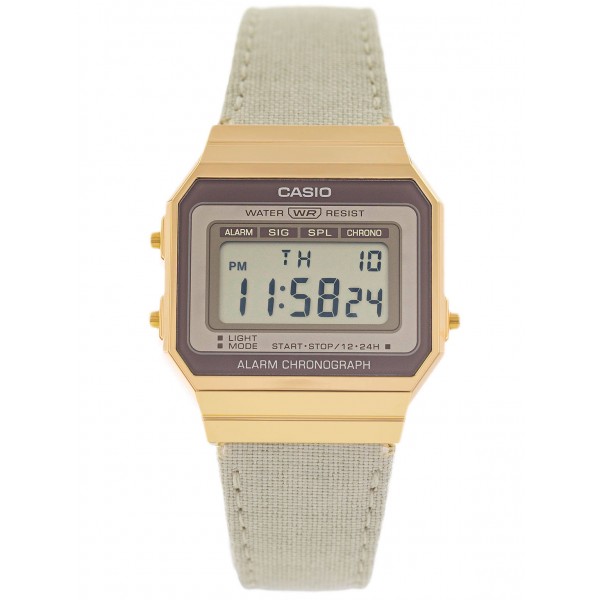 Жіночий CASIO A700WEGL 7A - ідеальна пропозиція для жінок, які шукають годинник ретро. Ремінець виконаний з тканини, що робить годинник легким і зручним у носінні. Прямокутний дисплей чітко вказує день тижня, день місяця і поточний час. Всередині є кварцовий механізм із живленням від батарейок, який вважається надзвичайно точним. Безсумнівно, корисною функцією є секундомір, який вимірює час з точністю до 1/100 секунди. A700WEGL 7A також оснащено pсвітлодіодним підсвічуваннямпомаранчевого кольору, що полегшує читання часу після настання темряви. Легкість і доступна якість виготовлення роблять модель привабливою на жіночому зап'ясті