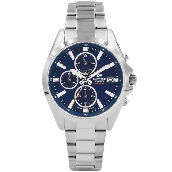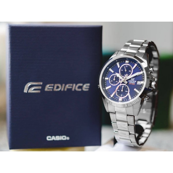 Casio EFV-560D-2AVUEF – ще одна модель із серії Edifice. Кварцовий механізм живиться від знімного акумулятора. Годинник повністю виготовлений з блискучої нержавіючої сталі, сріблястого кольору. На темно-синьому циферблаті є хронограф, який керується за допомогою бічних кнопок. Ця модель оснащена дисплеєм дати та часу в 24-годинному форматі. Таймер водонепроникний і його можна використовувати для плавання. Це можливо завдяки класу водостійкості на рівні 100 М. Фосфоровані руки після впливу деякий час світяться. Годинник Casio EFV-560D 2AV упакований в оригінальну коробку, тому він стане ідеальним подарунком.