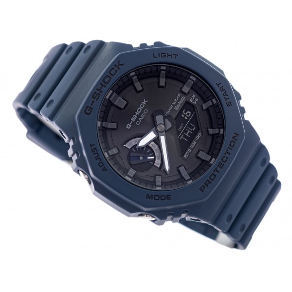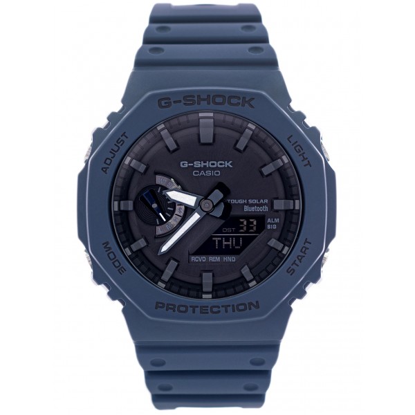 Серія CASIO G-SHOCK GA-B2100-2ARвідома модель з характерним, тонким, восьмикутним конвертом. Однак цього разу він був додатково оснащений Bluetooth і сонячною панеллю з індикатором рівня заряду, який вказується на циферблаті. Світовий час може бути корисним для тих, хто часто подорожує. Цифровий секундомір або таймер, який вимірює запрограмований час до нуля, буде корисним під час тренування. Годинник водонепроникний - 200M, тому йому не страшні водні види спорту. Підсвічування циферблата білим кольором дозволить вам читати значення на цифровому дисплеї в темряві.