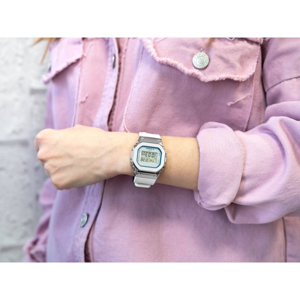 CASIO G-SHOCK GM-S5600LC-7ER Lover's Collectionмодель для активних жінок . Блискучий дзеркальний футляр у поєднанні з білим пластиковим ремінцем створюють вічний аксесуар. Крім чудового зовнішнього вигляду, годинник має безліч корисних функцій. Секундомір і таймер є невід'ємними елементами навчання. Розширений штамп дати вказує на день тижня, день місяця та місяць. Час може відображатися в12 або 24 годинному форматі. Завдяки класу водонепроникності200M, годинник також підходить для плавання. МодельGM-S5600LC-7ERє ідеальним вибором для жінок, які цінують функціональність годинника та його чудовий зовнішній вигляд.