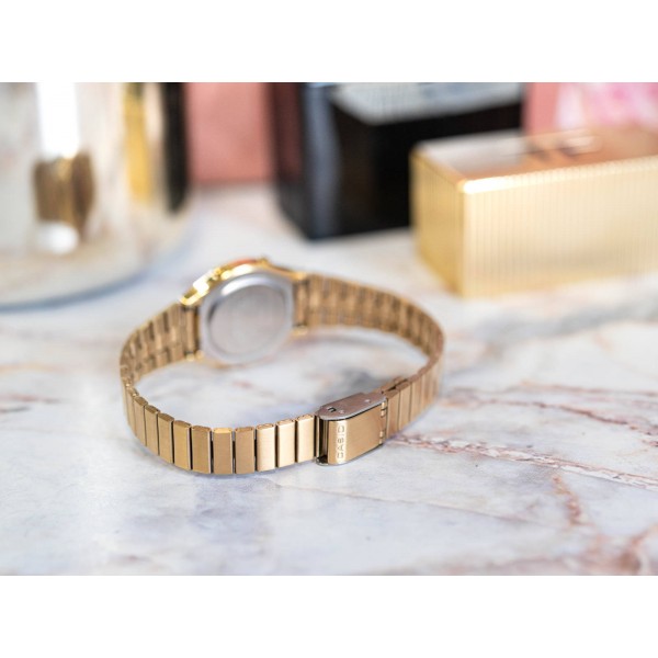 CASIO LA700WEG-9AEFце жіноча модель, яка вражає своїм ретро дизайном. Чарівний маленький футляр поєднується з надзвичайно зручним браслетом. Вся справа в золотистому кольорі, що робить цю модель позачасовою і підходить для багатьох стилів. Окрім бездоганного зовнішнього вигляду, годинник пропонує низку корисних функцій, які стануть у нагоді у щоденному використанні. Таймер використовуватиметься для відліку встановленого часу до нуля. Секундомір вимірює час, що минув, із точністю до 1/10 секунди. Про важливу річ нагадає будильник, який після установки на певний час подасть звуковий сигнал. Casio LA700WEG 9Aідеально впишеться у ваш повсякденний гардероб, а також доповнить офіційне вбрання. Його невеликі розміри виглядатимуть феноменально на маленьких жіночих зап’ястях.