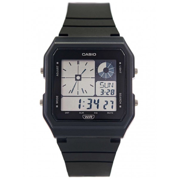 Casio LF-20W-1AEF Pop — це класична модель годинника, що характеризується простим дизайном і неймовірною функціональністю. Виготовлений повністю з легкого та міцного пластику. Цікаво, що дисплей показує час у цифровому та аналоговому вигляді. Крім унікального зовнішнього вигляду, ця модель оснащена безліччю функцій, необхідних для щоденного використання. Поточна дата і день тижня вказано праворуч. Годинник обладнаний Світовим часом, тож ви можете перевіряти поточний час у 48 містах світу. Він також має секундний таймер, 5 незалежних будильників і функцію щогодинного сигналу. Годинник дозволяє легко зчитувати час після настання темряви завдяки помаранчевому підсвічуванню циферблата. Все це вписується в цей непомітний годинник. Casio LF-20W-1AEF є ідеальною пропозицією для тих, хто шукає унікальні, позачасові аксесуари, які відповідають різним стилям.