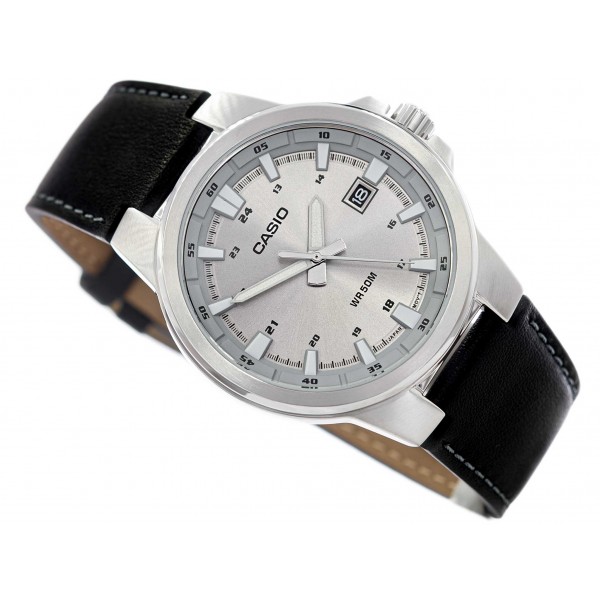 Casio MTP-E173L-7AVEF ідеальна пропозиція для чоловіків, які віддають перевагу простим і класичним рішенням. Корпус зі стійкої до корозії сталі підвішується на зручний ремінець з високоякісної шкіри. Срібний циферблат з мінімалістичним дизайном ідеально гармонує з елегантним характером цієї моделі. На циферблаті розміщено штамп з датою, завдяки якому ми можемо легко перевірити поточний місяць. Годинник також має функцію neobride, тобто стрілки з фосфорним покриттям, які світяться в темряві, що дозволяє без проблем зчитувати час за будь-яких умов. Серцем моделі MTP-E173L-7AVEF є японський кварцовий механізм, який працює від акумулятора. Приглушені кольори роблять годинник ідеальним доповненням до будь-якого стилю.
