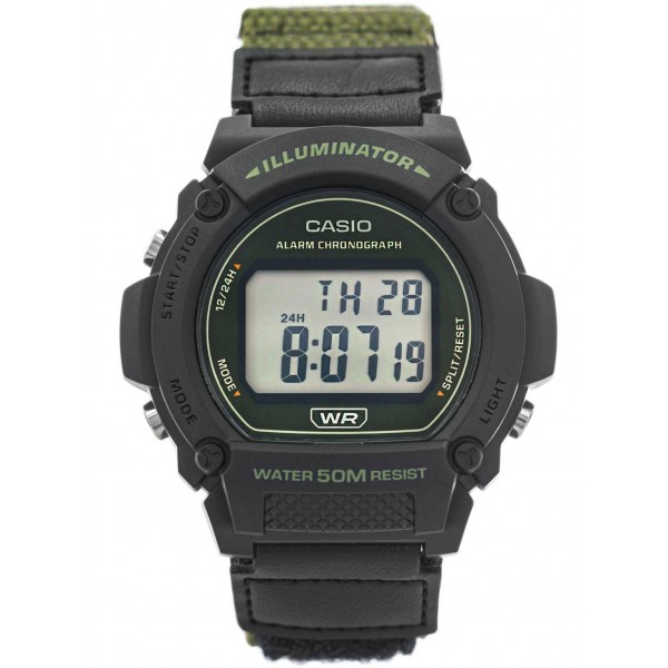 Casio W-219HB-3BVEF ідеально виглядатиме на чоловічому зап'ясті. Циферблат показує час, день тижня, місяць і день місяця. Час у цій моделі може відображатися як у 12, так і в 24 годинному форматі. Годинник, який є однією з функцій, ідеально підійде під час тренувань. Ремінець виготовлений із брезентової стрічки, закріпленої на липучці, що робить годинник зручним у носінні та легким у налаштуванні. У темряві нам буде легше читати час завдяки помаранчевому світлодіодному діоду. Ще однією перевагою є клас водонепроникності 50M, який дозволяє плавати з годинником.Casio W-219HB-3AVEF - це пропозиція для людей, які шукають функціональний спортивний годинник.