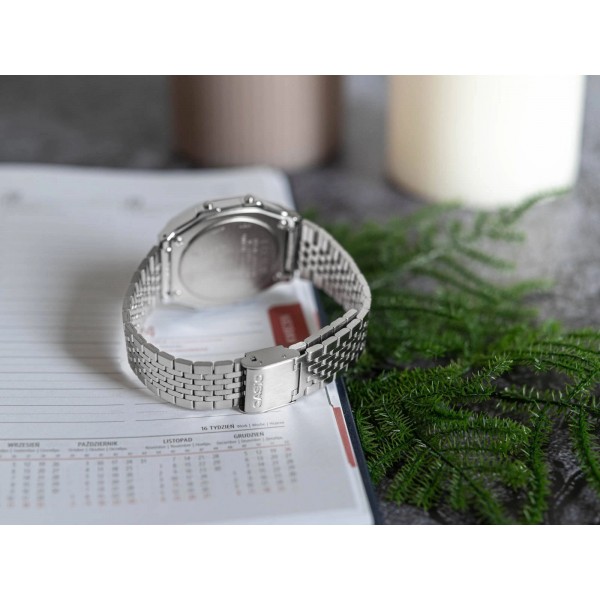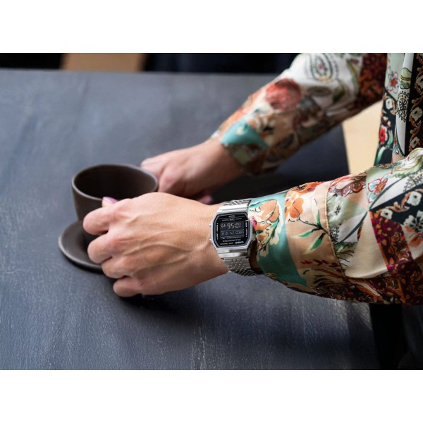 Casio ABL-100WE-1BER – це інноваційний годинник із серії Casio Vintage, який поєднує ретро-стиль із сучасними функціями, пропонуючи щось більше, ніж класичний дизайн. Casio Vintage – це лінія, натхненна культовими моделями попередніх десятиліть, яка привертає увагу своєю елегантністю та позачасовим виглядом. Ця модель відрізняється тонким легким корпусом з міцного пластику, який приховує точний кварцовий механізм з батарейним живленням. Міцний браслет з тонкої тканини з нержавіючої сталі з функцією швидкого регулювання G-Link забезпечує комфорт і ідеальну посадку на зап'ясті, в той же час підкреслюючи елегантний характер годинника. Чорний і сріблястий кольори годинника ABL-100WE-1BER підкреслюють його класичний вигляд, а стійкий до подряпин акриловий кристал захищає негативний цифровий дисплей. Окрім стильного зовнішнього вигляду, цей годинник пропонує вражаючий набір технологічних функцій. Вбудований модуль Bluetooth дозволяє підключати годинник до смартфону, що дає вам доступ до багатьох сучасних зручностей, таких як монітор фізичної активності та будильники. Krokomir записує щоденну активність, допомагаючи стежити за здоров'ям і фізичною формою, що робить його ідеальним вибором для активних людей. Організаційні функції годинника включають п'ять настроюваних щоденних будильників, точний секундний таймер і таймер, що дозволяє вам планувати свій день з точністю до секунди. Вбудований автоматичний календар враховує місяці різної тривалості, завжди показуючи правильну дату. Годинник оснащений помаранчевим світлодіодом Підсвічування, який забезпечує чудову читаність у темних умовах, і користувач може регулювати час підсвічування до 1,5 або 3 секунд залежно від своїх уподобань. Завдяки функції Відключення звуку можна вимкнути звуки кнопок, що корисно в місцях, де потрібна тиша, не втрачаючи сигналів будильника чи таймера. Крім того, індикатор стану батареї інформує користувача, коли настав час замінити батарею. Годинник також пропонує розширену персоналізацію функцій за допомогою мобільного додатку, що значно полегшує налаштування налаштувань відповідно до індивідуальних потреб. Модель ABL-100WE-1BER також має функцію Phone Finder, яка допомагає знайти загублений телефон, запускаючи на ньому сигнал тривоги після натискання відповідної кнопки на годиннику. Іншою цікавою функцією є Час і місце, яка записує дату, час і місцезнаходження на карті, що є ідеальним інструментом для документування подорожей і заходів. Для тих, хто часто подорожує, годинник пропонує функцію світового часу, яка дозволяє швидко перевірити час у різних часових поясах, що є неоціненною допомогою під час міжнародних подорожей або глобального ділового співробітництва.